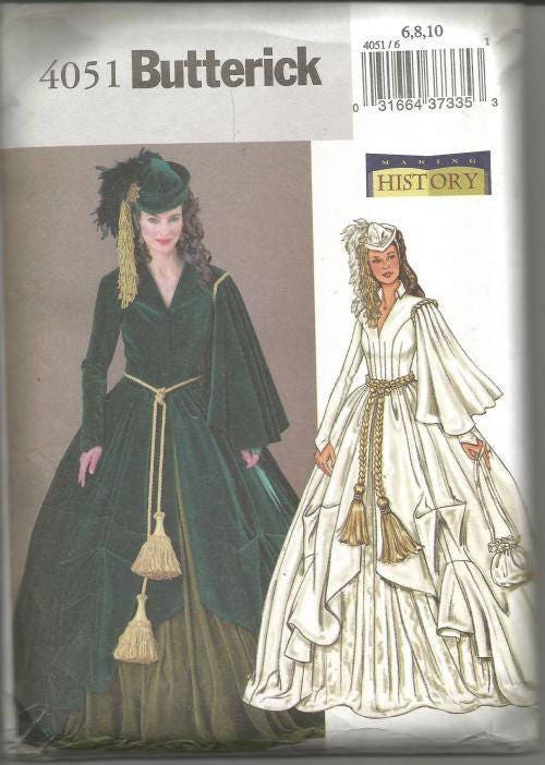 Butterick 4051 Historical Costume Pattern Gone With The Wind Scarlett O Hare Dress Hat Bag Size 6 To 10 Arts Crafts Sewing Amazon Com
